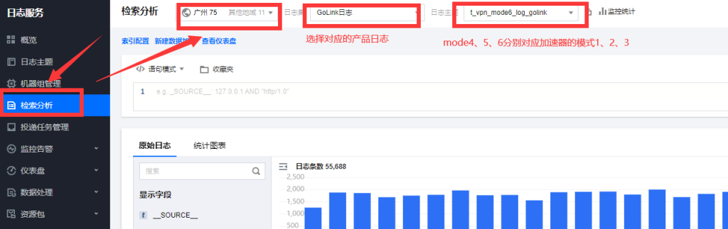 2、选择对应产品的日志