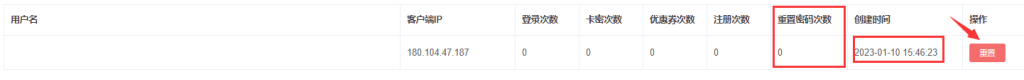 2、注册页面显示的ip,在管理后台——日志管理——hack日志——输入用户注册页面显示的ip——点击重置。